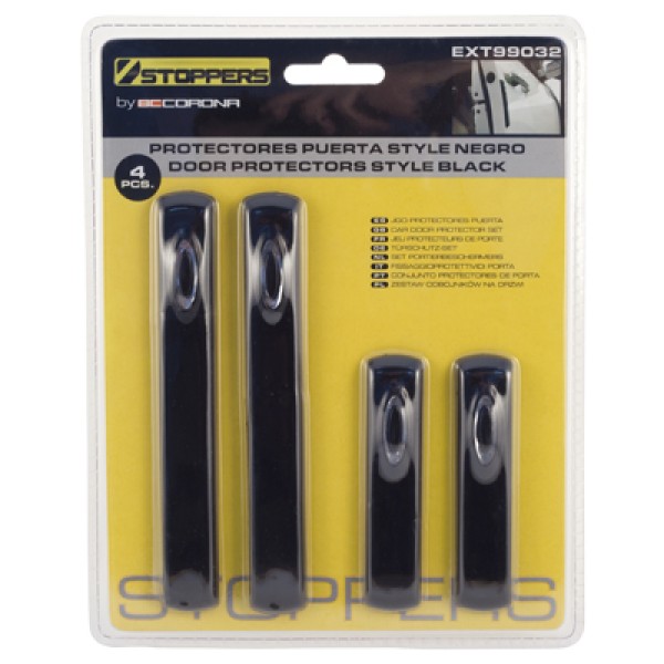 Hazte con tu protector de ralladas para puerta en acabado negro de la prestigiosa marca STOPPERS. Incluye 4 protecciones.